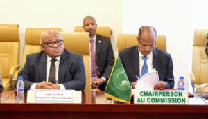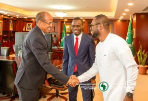 The signing ceremony took place at the African Union Headquarters in Addis Ababa, where H.E. Mahmoud Ali Youssouf, Chairperson of the African Union Commission, received the Executive Leaders of the Pan-African Youth Union, President, Mr. Moumouni Dialla, Secretary-General, Mr. Wiisichong Bening Ahmed and Executive Director, Ms. Imane Ibn El Melih Taya. The ceremony was witnessed by the Chairperson of the AU Specialized Technical Committee (STC) on Youth, Culture and Sports.